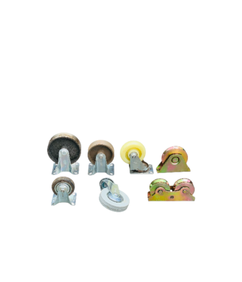 A durable set of industrial caster wheels and rollers designed for smooth movement of trolleys, furniture, cabinets, and sliding doors. Made with strong metal brackets and quality rubber, nylon, and steel wheels for long-lasting performance.